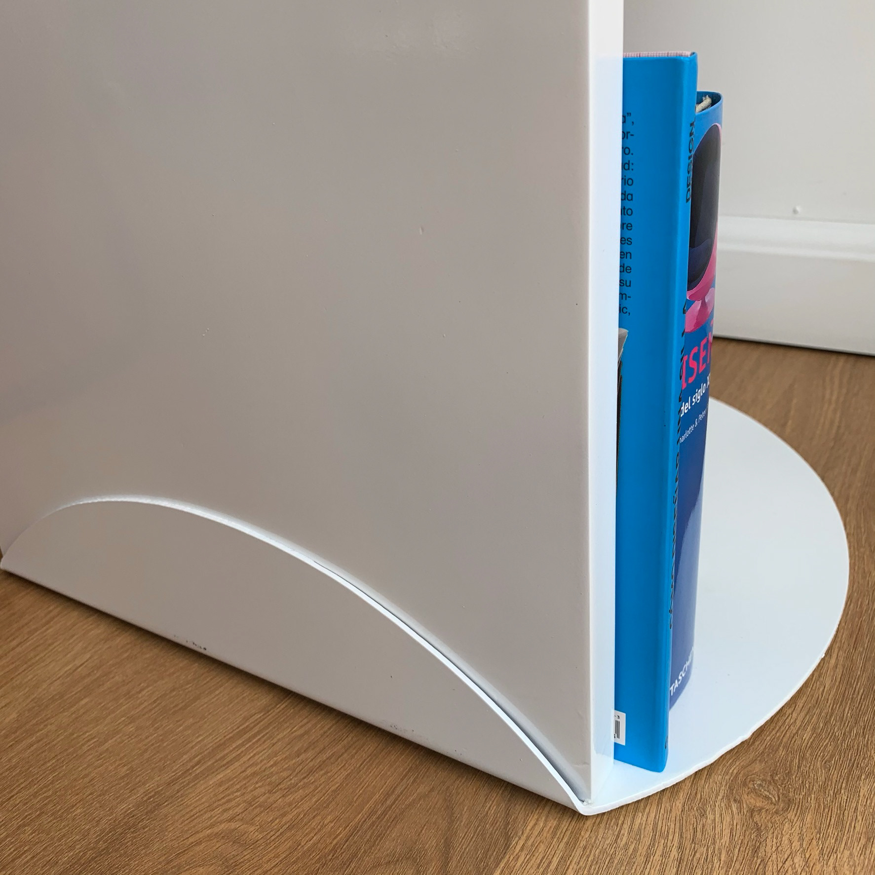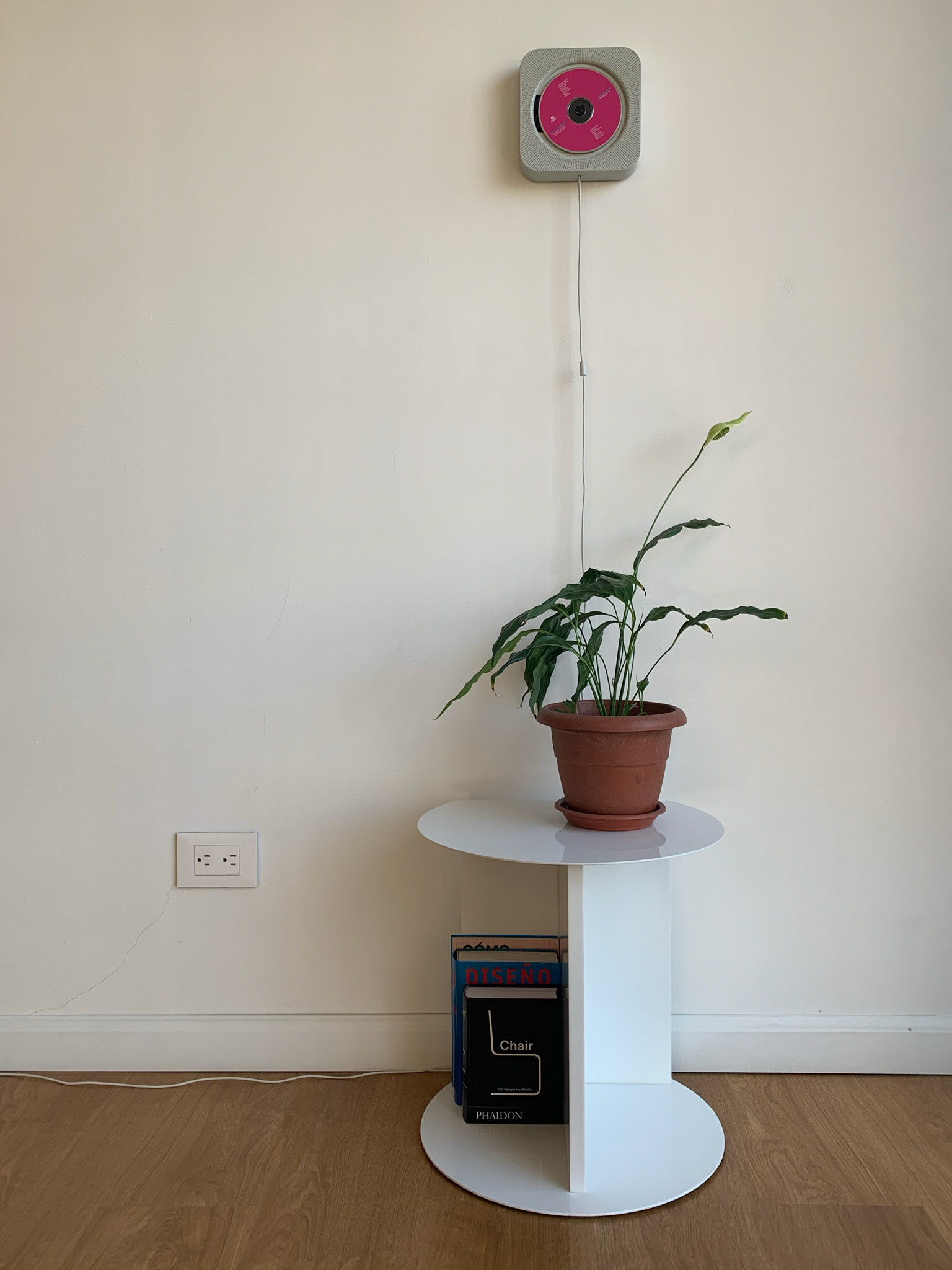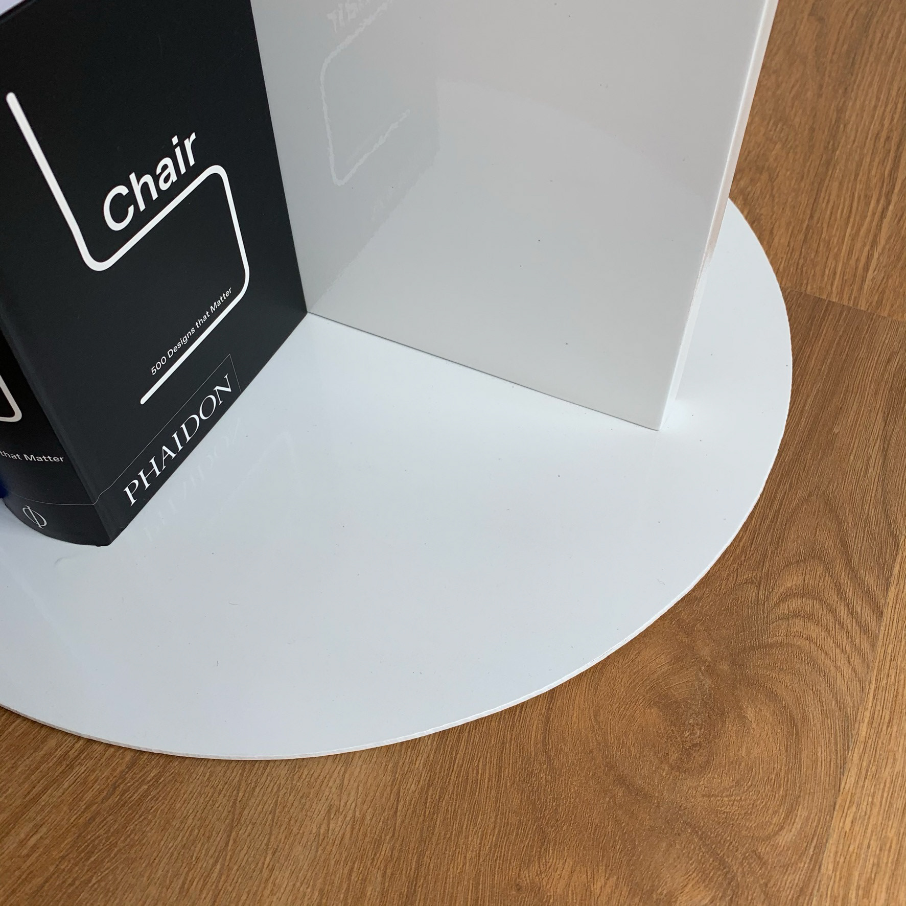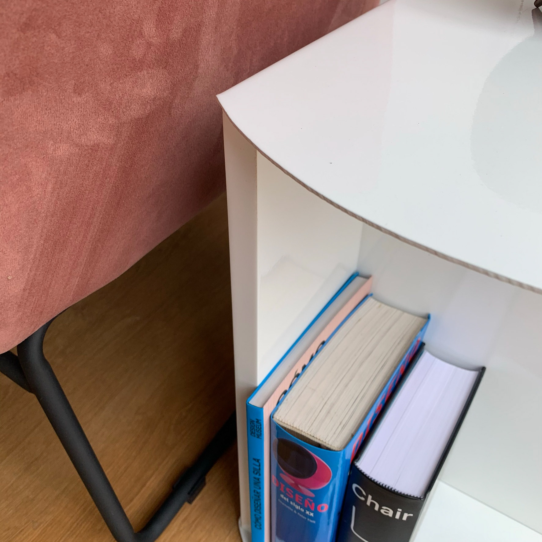 A simple side table fabricated in lacquered metal and MDF.