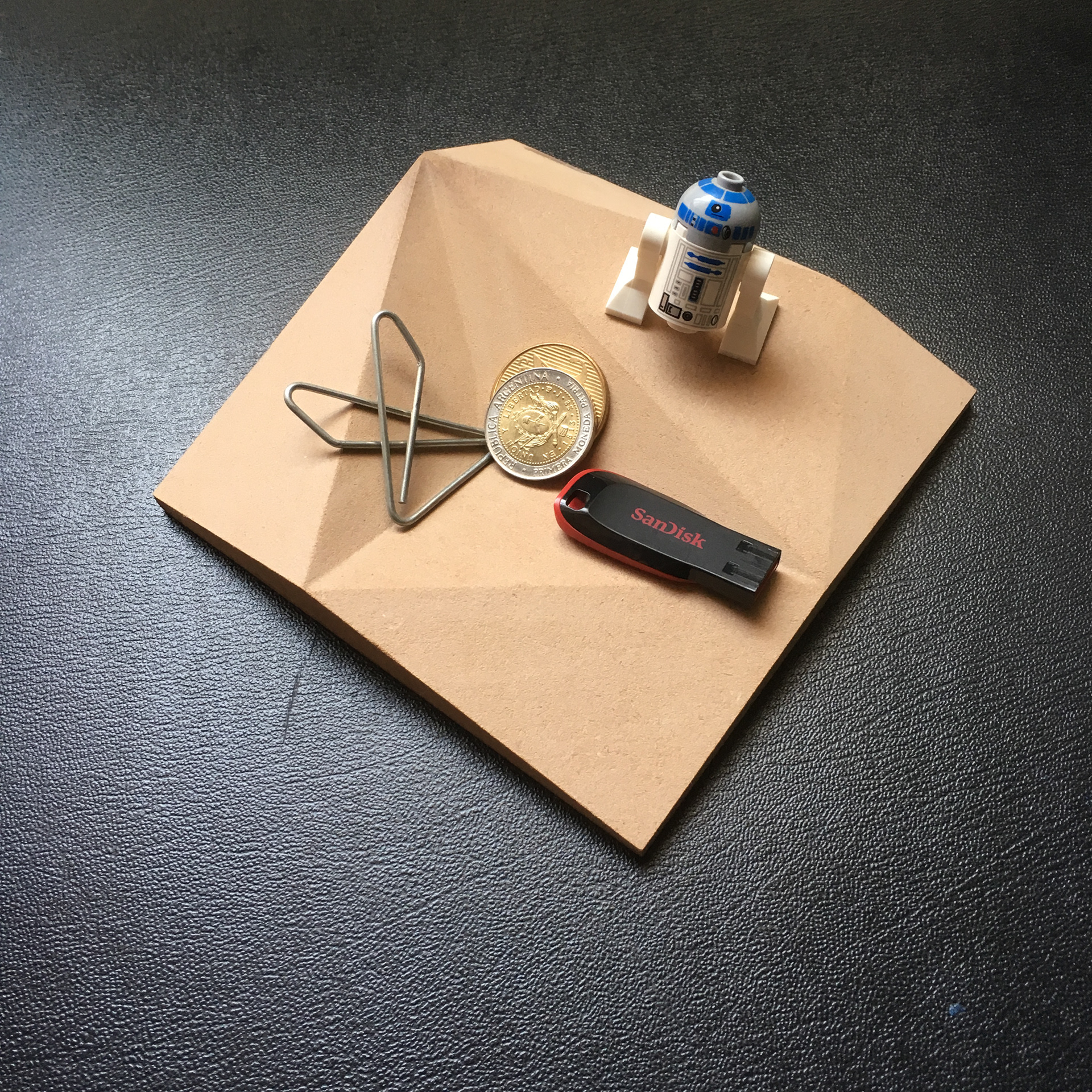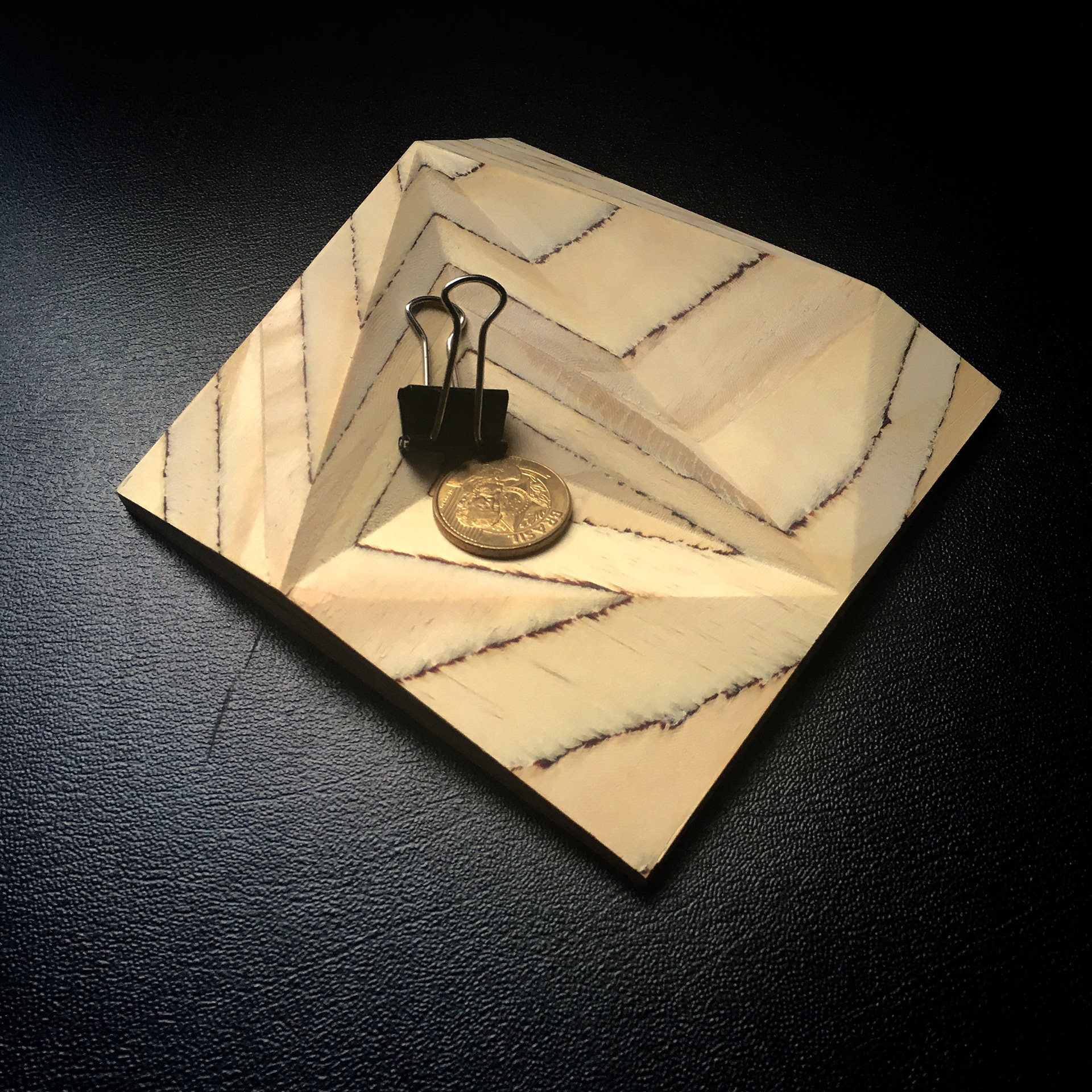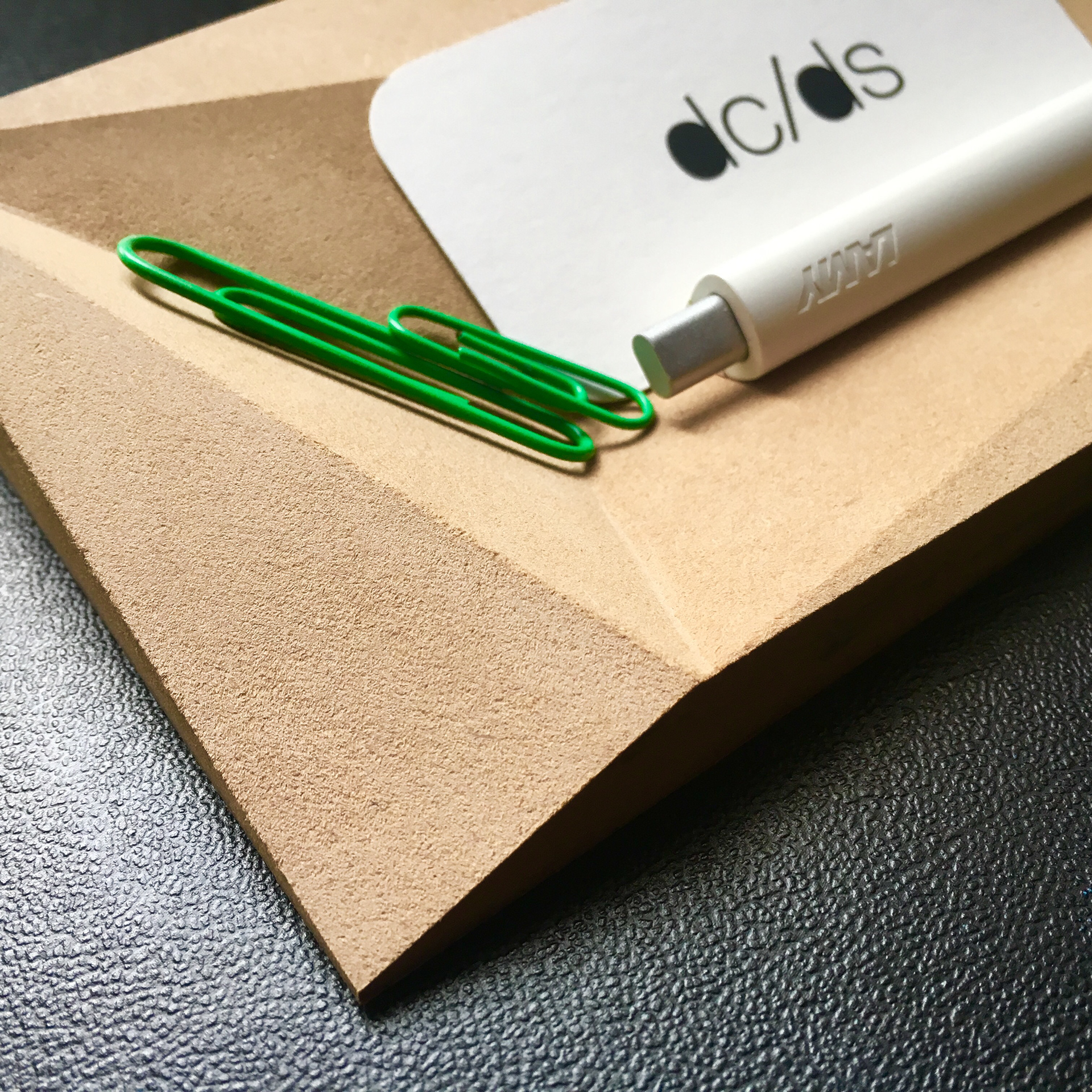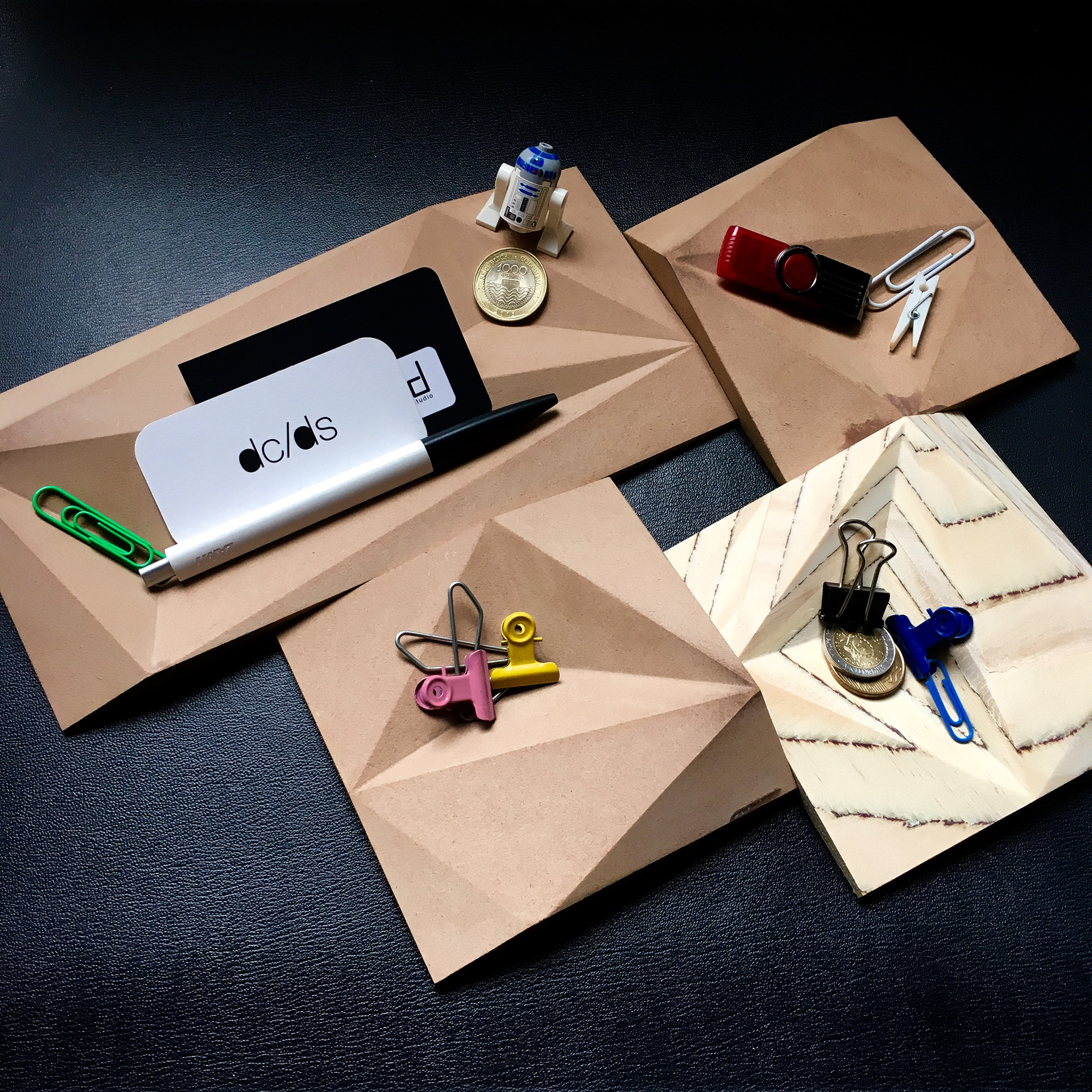 Ox is a set of two desk organizers, a small and large sizes. This is a first natural (raw) MDF and plywood version, made by 3D geometrical CNC sculpting.
